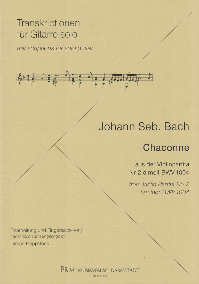 Die Chaconne d-moll aus der Violinpartita BWV 1004 bearbeitet für Gitarre solo von Tilman Hoppstock. Neben einem sorgfältig erstellten Notentext bietet die Edition eine Reihe von Bearbeitungsvarianten und auch verschiedene Fingersatzvalternativen. Somit ist diese Notenausgabe für jeden Gitarristen eine wertvolle Hilfe bei der Beschäftigung mit dem vielleicht bedeutendsten Werk, das Bach je geschaffen hat. Mit ausführlichen Erklärungen in dt. und engl. und Fingersätzen des Bearbeiters.